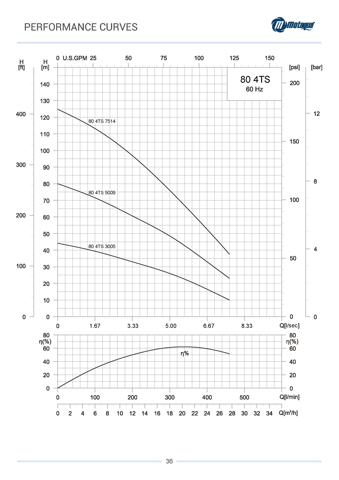 CUERPO SUMERGIBLE MOTAQUA 4" SERIE MTS MOD. 804TS5009 80GPM 5,00HP 09ET 2"NPT NEMA4