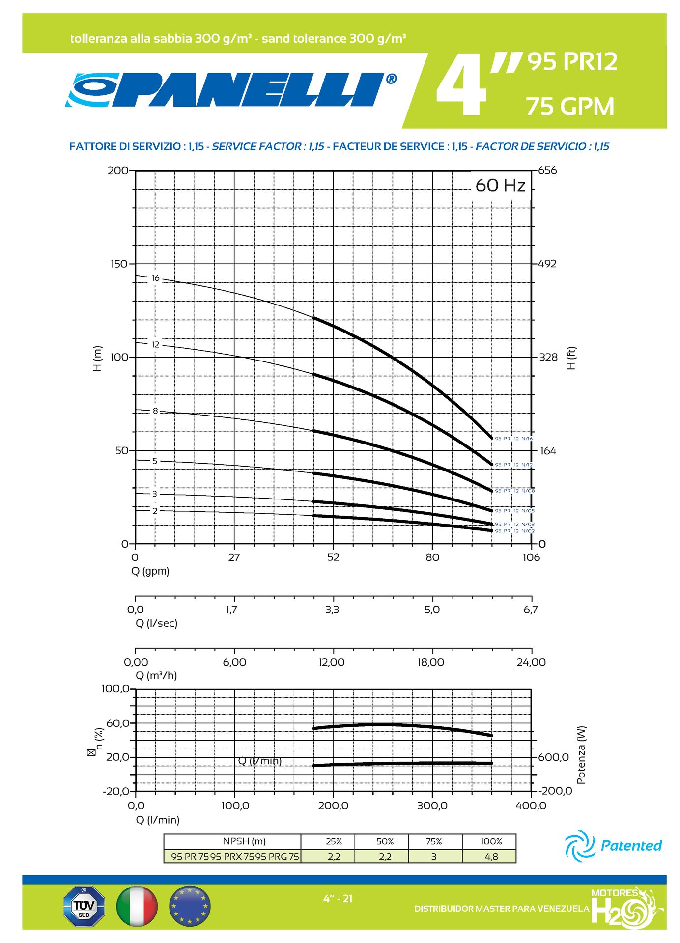 CUERPO SUMERGIBLE PANELLI 4" SERIE PR MOD. 95PR7512 75GPM 7,50HP 12ET 2"NPT NEMA4