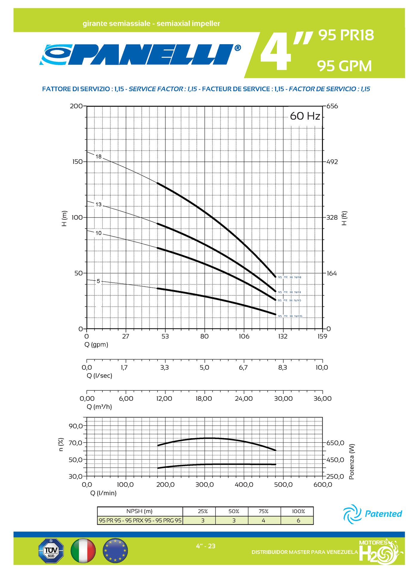CUERPO SUMERGIBLE PANELLI 4" SERIE PR MOD. 95PR9505 95GPM 3,00HP 05ET 2"NPT NEMA4