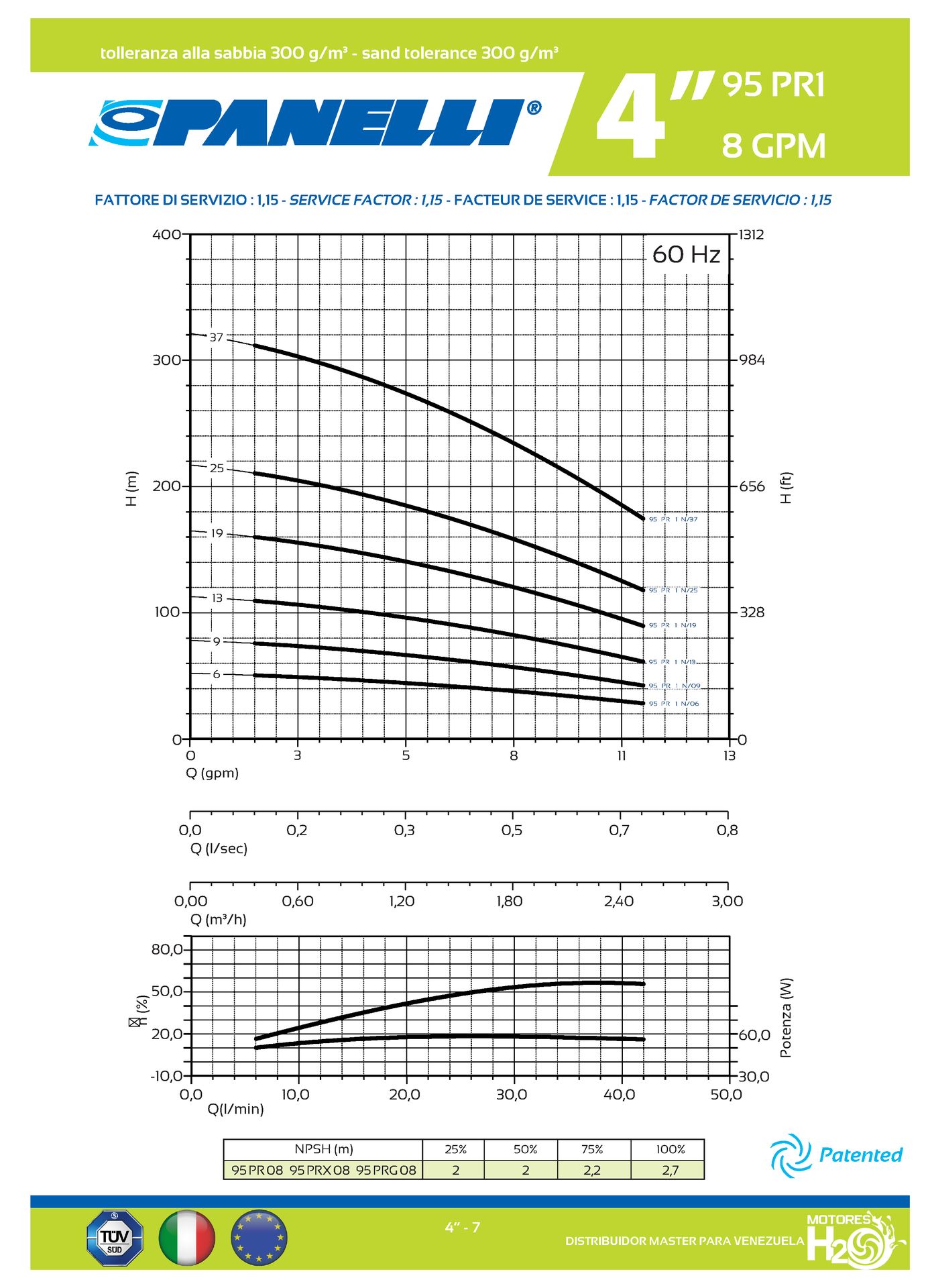 CUERPO SUMERGIBLE PANELLI 4" SERIE PR MOD. 95PR0813 8GPM 1,00HP 13ET 1-1/4"NPT NEMA4